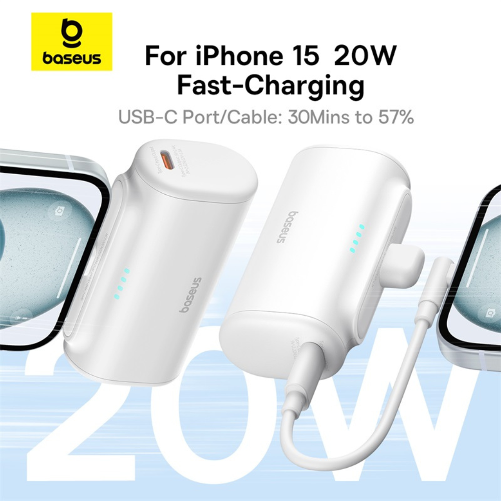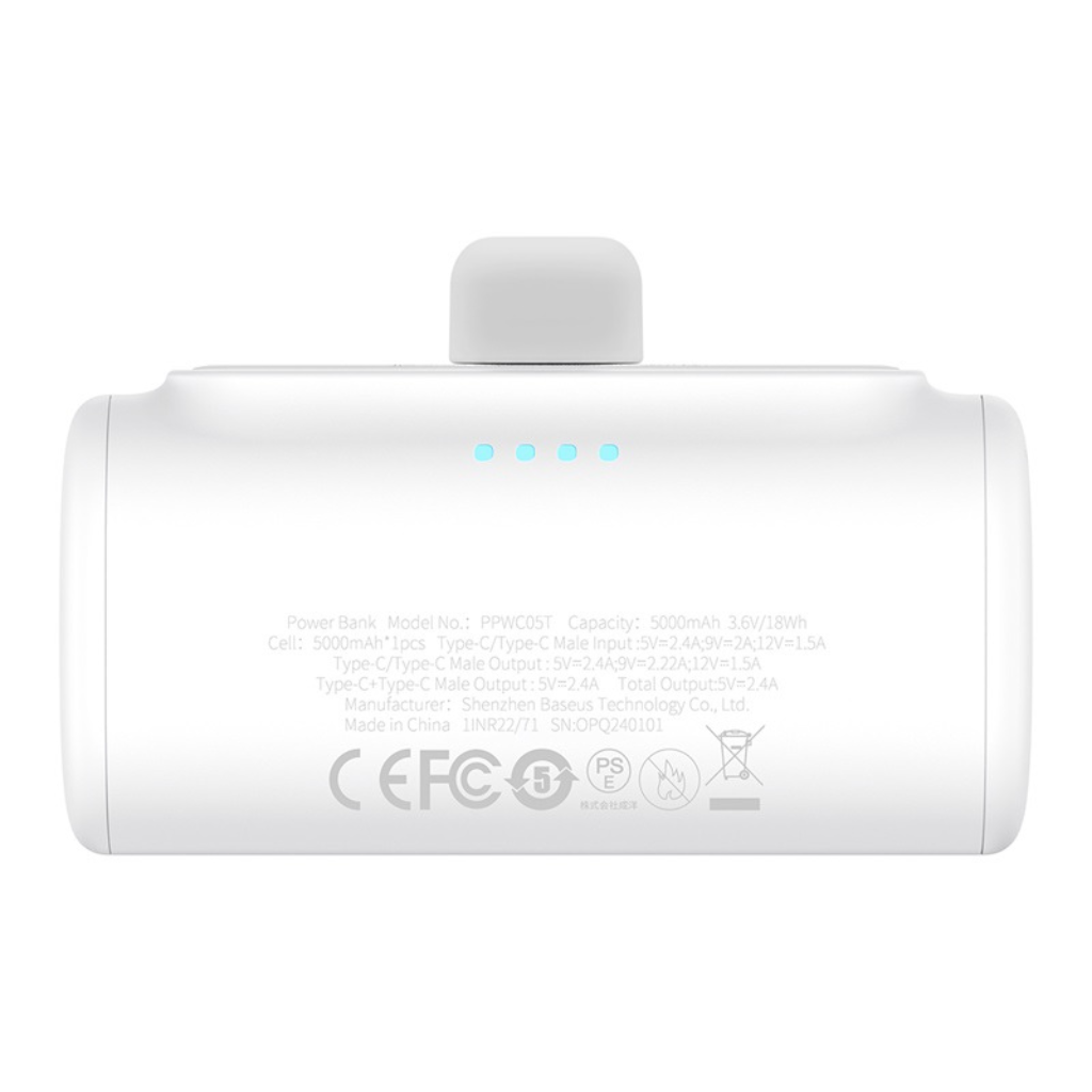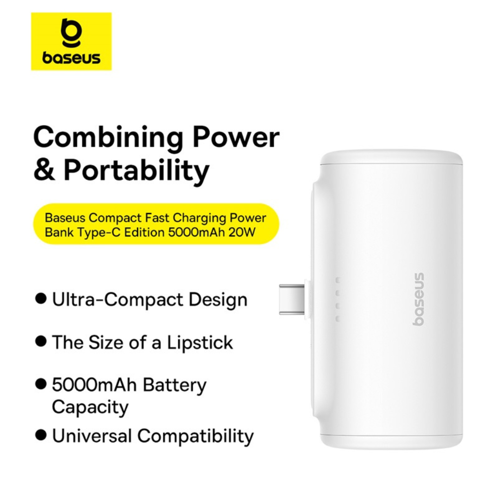 Cargador portátil Baseus Compact Mini. Este práctico power bank ofrece una solución energética eficiente para tu día a día, con su capacidad de 5000mAh que te permite recargar tu smartphone u otros dispositivos móviles cuando más lo necesites, ya sea durante viajes, excursiones o en tu rutina diaria.