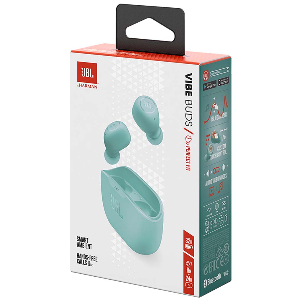 Hasta 32 (8h + 24h) horas totales de duración de la batería con carga rápida Con 8 horas de duración de la batería en los auriculares y 24 en el estuche, los JBL Vibe Buds brindan audio durante todo el día. Y cuando necesite más energía, puede acelerar la carga dos horas más en solo 10 minutos.