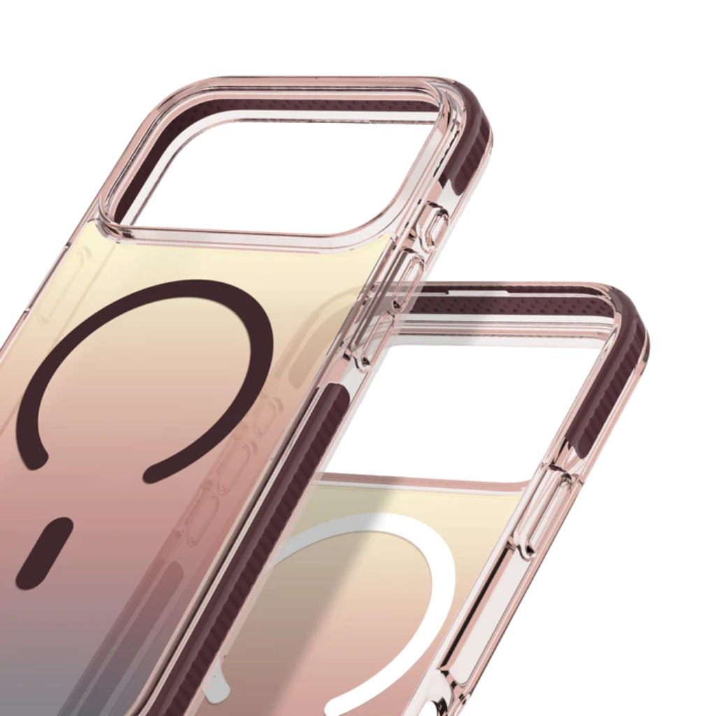 Protección y estilo con estas vibrantes fundas translúcidas con degradado multicolor. Nuestras fundas de la serie Safetee están comoldeadas con 3 materiales diferentes para brindar la mejor protección y proteger tu nuevo iPhone de golpes y caídas. Máxima protección. Diseño delgado. *Con la experiencia adicional de poder cargar de forma inalámbrica su teléfono mediante la tecnología MagSafe®.