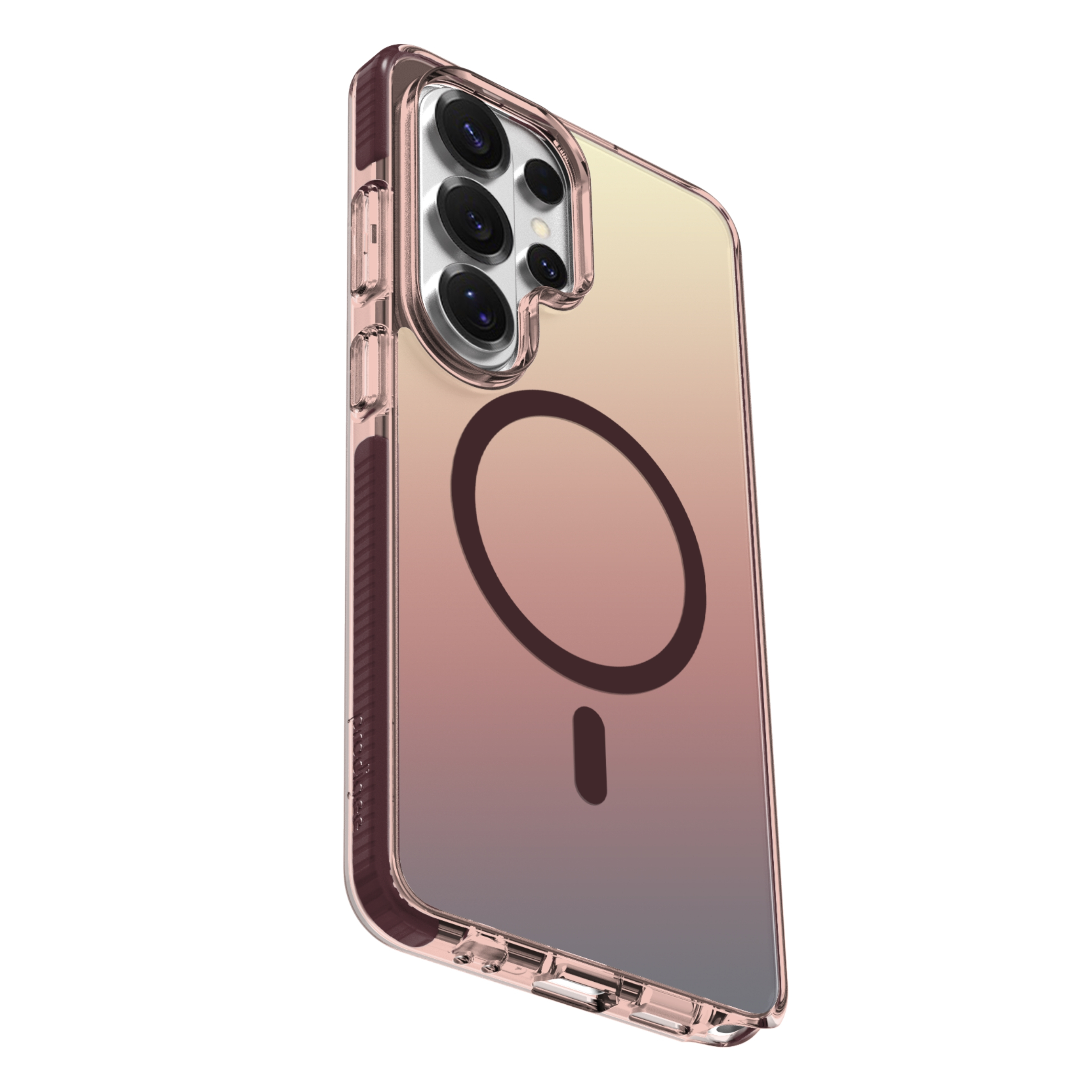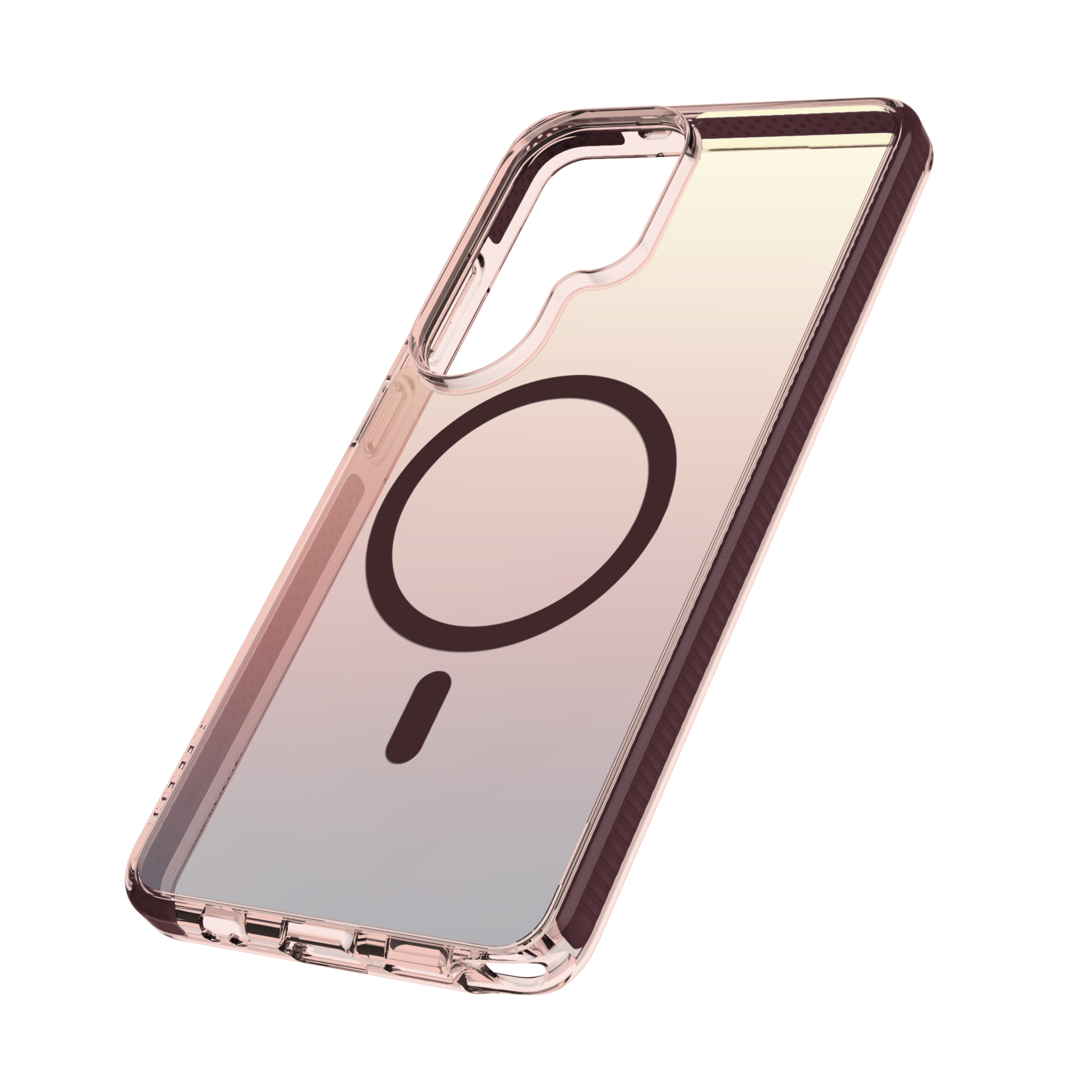 Estuches translúcidos pero vibrantes con degradados multicolores.