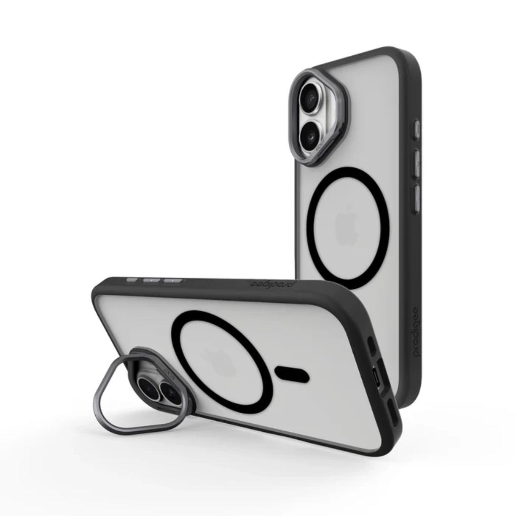 Diseño innovador. Elegante. Protector. ¡Divertido y funcional! Su material dual y diseño suave al tacto proporciona una protección superior y resguarda tu nuevo iPhone de golpes y caídas. La función de soporte ofrece un ángulo de visión óptimo. *Esta funda cuenta con imanes integrados diseñados para alinearse perfectamente con tu nuevo iPhone, ofreciendo un agarre firme y carga inalámbrica. Compatible con todos los accesorios de carga Prodigee con función "Mag".